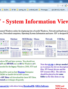 System Information Viewer (SIV) 라고 하는 유틸리티를 소개합니다. 기능이 지나치게 많은게 장점이자 단점인듯 합니다. 윈도우즈 계열(Windows 8.1, 8.0, 7, Vista, XP, 2012, 2008, 2003, 2000 and NT4. Windows 95, 98 and Me) 컴퓨터에서만 사용할수 있네요. 일단, 싸이트( http://rh-software.com)를 둘러볼까요? 화면의 레이아웃이 상당히 어지럽습니다. 일단, 빨간박스로 표시된 siv.zip 링크를 클릭해서 다운로드 합니다. 다운로드후 압축을 풀면, exe실행파일이 2개가 있습니다. 본인의 컴퓨터가 32bit 인지 64bit 인지 확인합니다. 32비트 면 SIV32X.exe를 , 64비트 면 SIV64X.e..