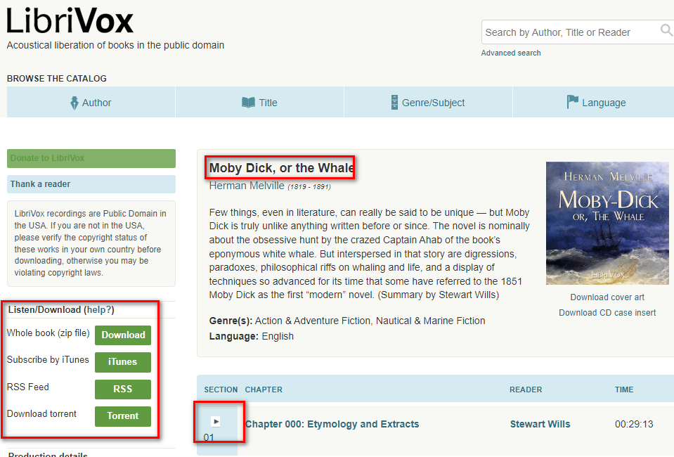 Moby Dick이라는 책을 검색해 보겠습니다. 다행히 존재하는군요.